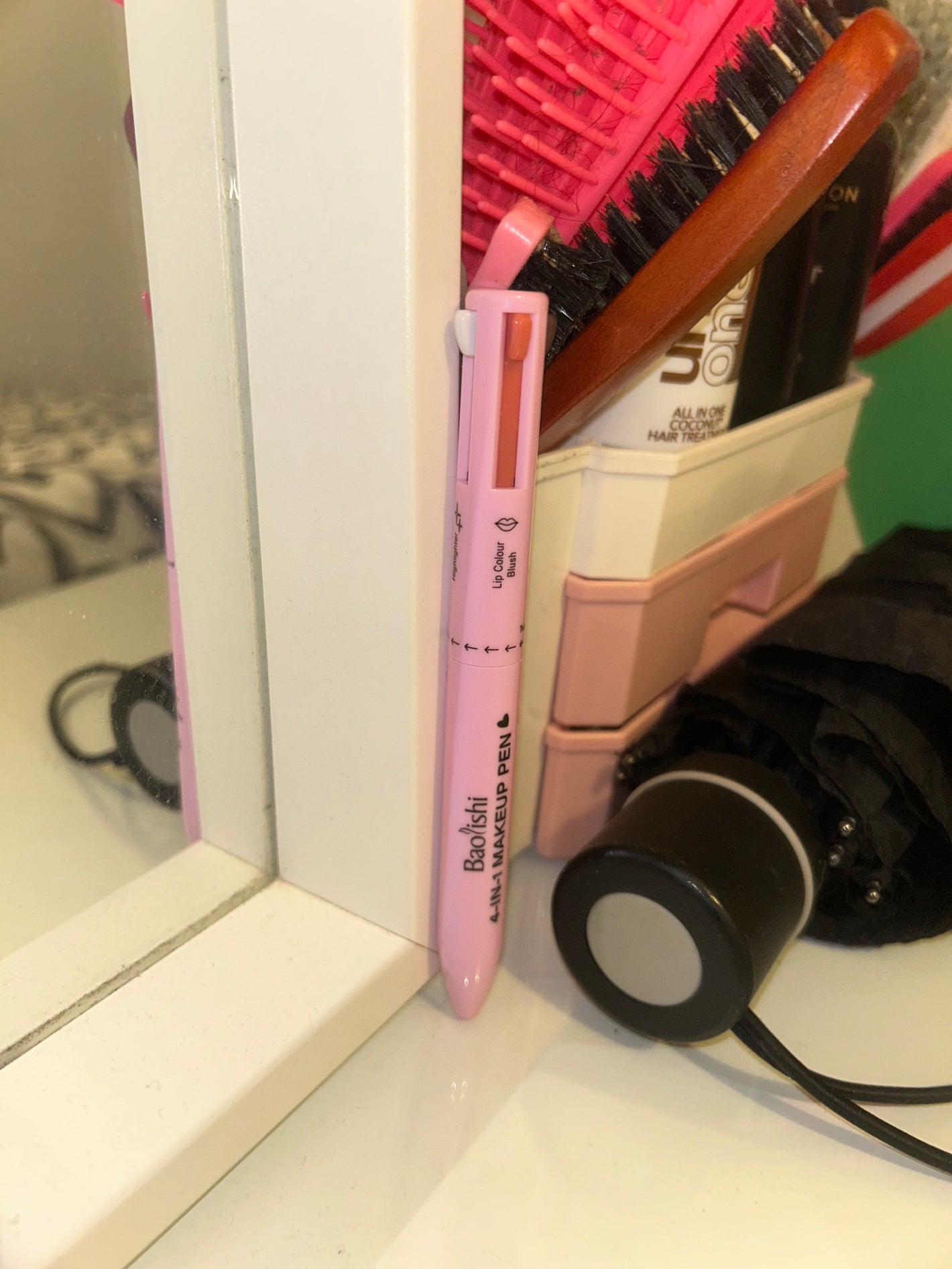 Me encanta maquillarme con este bolígrafo ya que puedo hacerlo donde quieras y nunca se me olvida llevármelo ya que tiene 4 en 1.